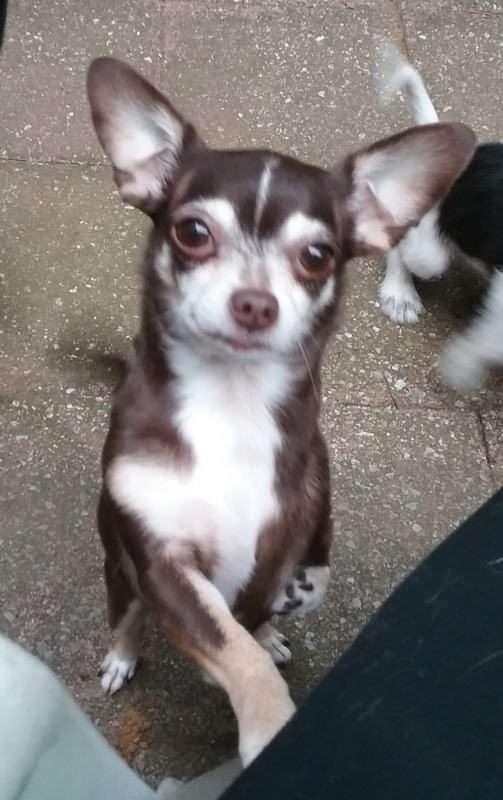 | Poor little Nina. She was given up to a loud shelter because her people did not have time for her. What a shame. Frankly, she is the easiest dog to care for. This sweet chi-doxie baby girl needs a home without boisterous children. She weighs less than five lbs. and has a deformed front leg. She gets around fine but don't expect her to walk on a leash.. She can do almost anything any other dog can do! She is amazing and shows her chi spirit more every day. She likes creature comforts like soft blankets, good food and loving, lots of loving. She needs to be allowed to sleep in bed with her person.She really needs a dog buddy who can appreciate her chi attitude. She is a special girl. If you have experience with the breed or with dogs with disabilities, please consider applying for her. Her adopter should be breed savvy. She would be perfect for an all-adult home with someone who is home more than not with a fenced yard (she loves being outside) and happy playful dogs her age and size. She uses puppy pads reliably and knows to potty outside but still has accidents inside.. As a potential adopter, you must have an excellent reference from your vet. ***Applicants must be willing to drive to Ellicott City, Maryland (10 miles south of Baltimore) to meet and adopt Little Nina.**** |