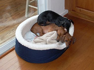 When Jordan came to live with us a little over a year ago, he was a nervous little man, scared of everyone, and so skinny his vertebrae jutted out like shark teeth. Right after eating, he curled up on my husband's chest, and that's where he spent his first night with us. Since then he's filled out nicely - now he's a healthy ten pounds! He has a lot more confidence now, too. He prances around the house with his tail up happily and chases after his two doxie sisters, and while he's still cautious about meeting new people, they don't frighten him nearly as much as they used to. Jordan has fit so nicely into our household, and every day we have with him, we're grateful we had the chance for him to come live with us. He's such a special little man. Thanks, DRNA, for helping Jordan join our family!